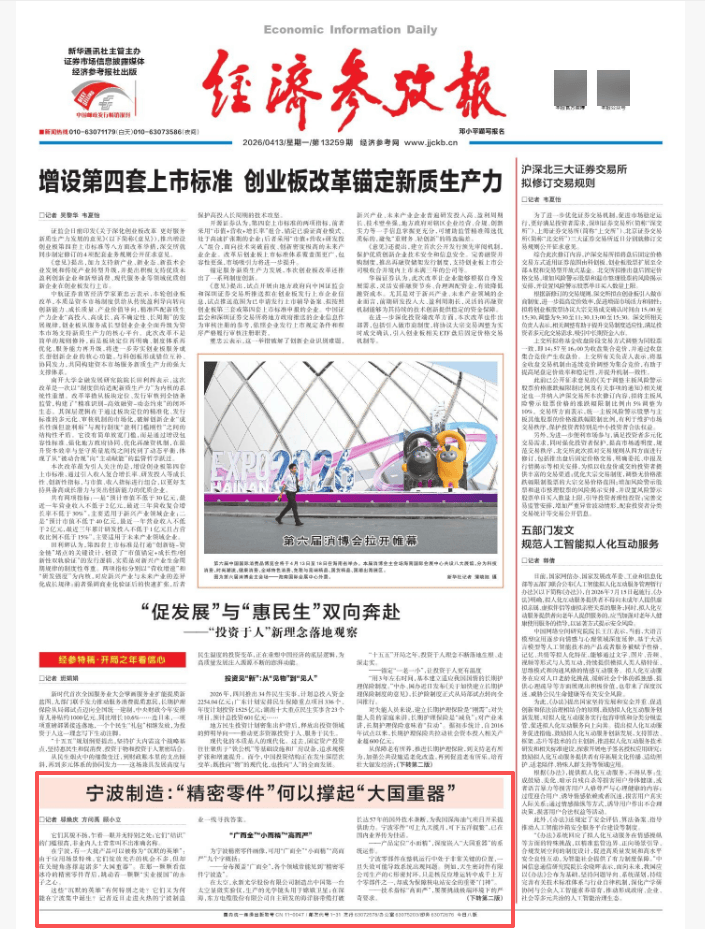 2026-04-17必威官方网站,Betway必威,必威APP下载今天,《新华每日电讯》头版刊发题为《在宁波,看见智造中国》的报道,聚焦宁波这座制造业重镇如何以智能制造为路径,从“机器换人”起步,到创建国家新型工业化产业示范区,生动勾勒出“中国制造”向“中国智造”迭代升级的奋进图景。现转发此文,以飨读者。