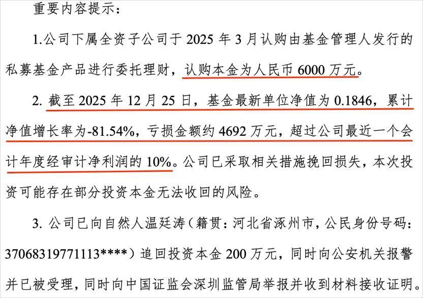 2026-01-01必威官方网站,Betway必威,必威APP下载12月26日晚,圣元环保(300867.SZ)发布公告,称全资子公司厦门金陵基今年3月购买的私募基金理财产品发生了大额亏损。投资本金6000万元,