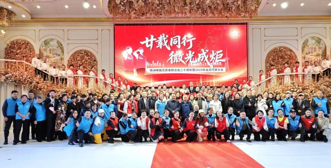 “20年,我们温暖同行,共同成长,像细流蜿蜒成海,像微光汇聚成炬。而今,初心滚烫,再启新程!”(株洲晚报志愿者联合会二十周年暨2025年会员代表大会上现场视频解说词)
