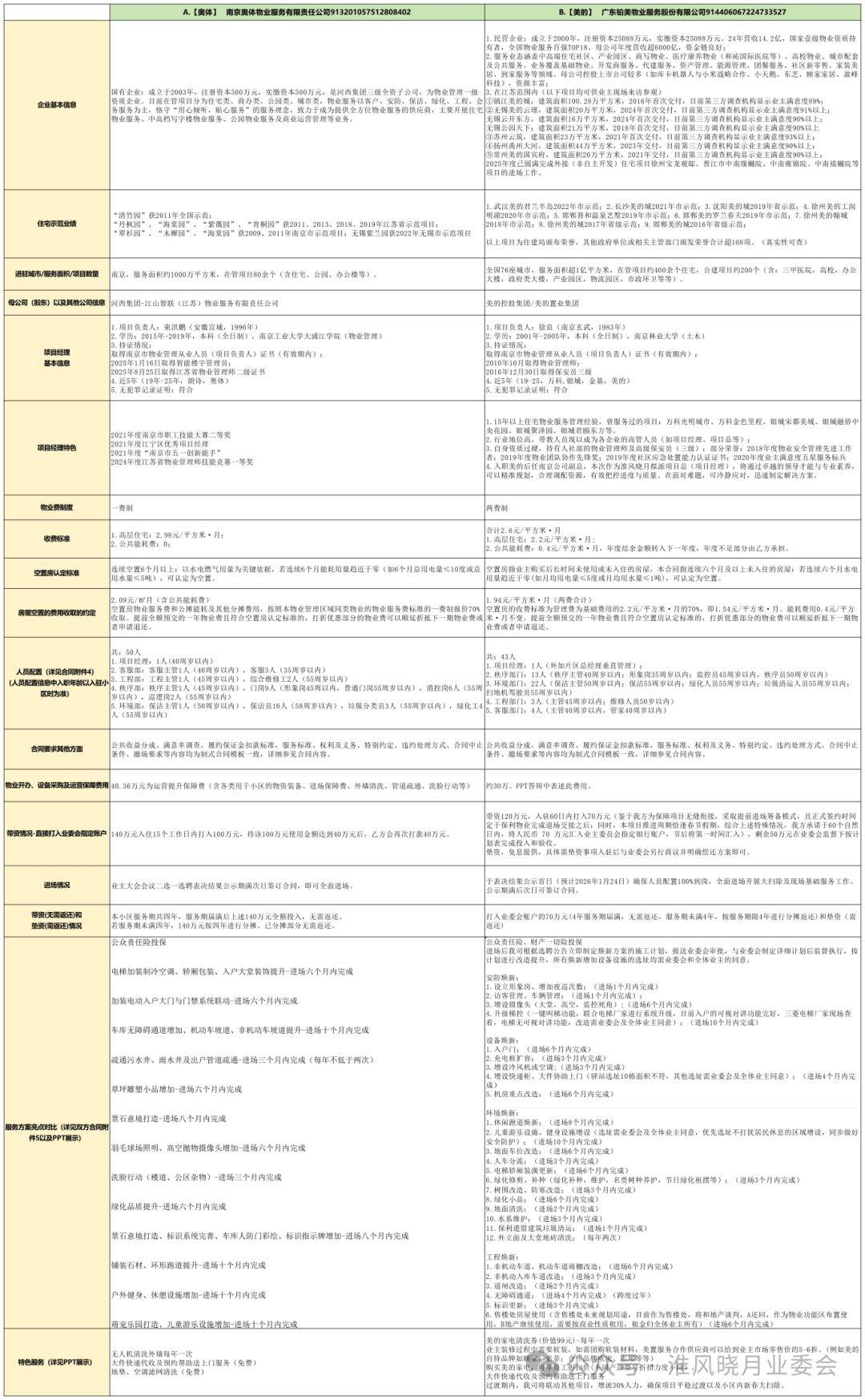 ●B 企业(3个月-1年完成):增设监控/车库改造/水景维护/宠物粪便箱/节日布置等;承诺“打入业委会70万元(含服务费保障,无违纪则第四年分账返还)”