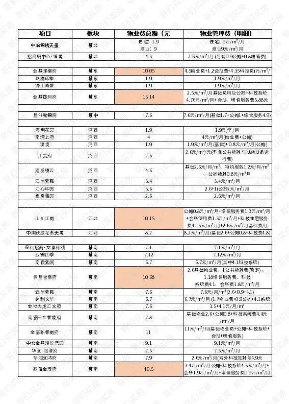 笔者统计了下近两年南京各新盘的物业费,特别是一些有大会所的科技系统住宅,物业费确实挺高,不少已经赶上了上海内环的物业费用(10元+/㎡/月)!