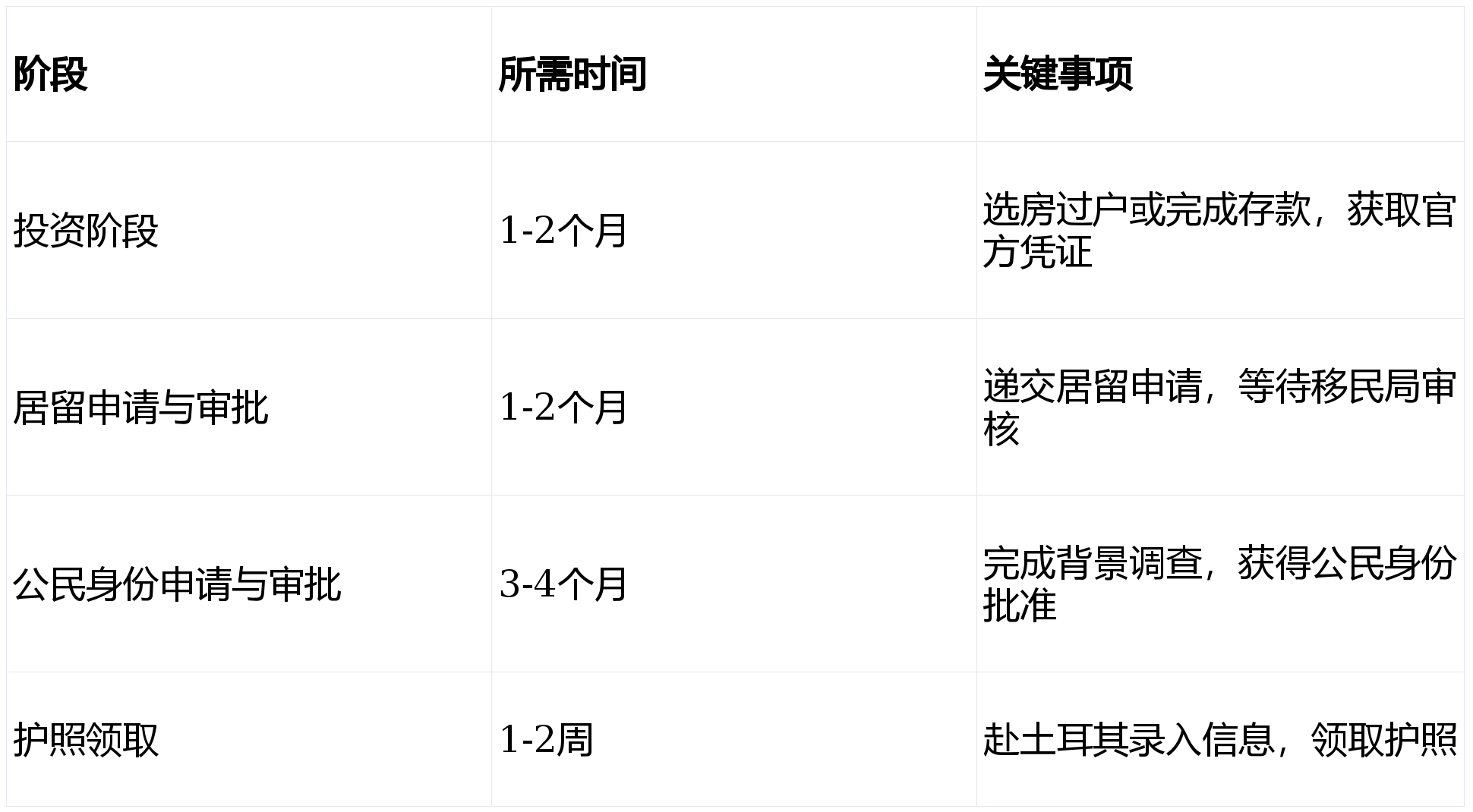 从启动投资到最终获得土耳其护照,整个流程一般需要6到9个月时间。具体时间分布如下: