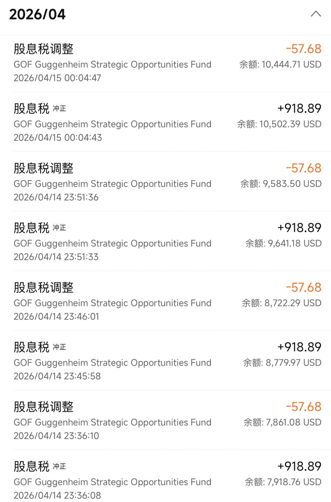 我等的是GOF这支派息基金的退税。往年4月初就到账了,今年磨磨蹭蹭拖到4月15日才到。